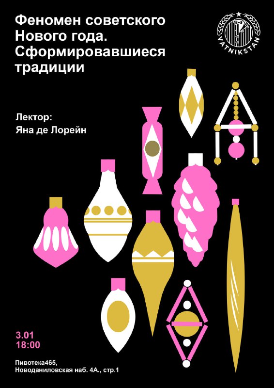 Приглашаем на лекцию «Феномен советского Нового года. Сформировавшиеся традиции» в бар «Пивотека465» на Тульской. Искусствовед и создательница телеграм-канала «Московских окон негасимый свет» Яна де Лорейн расскажет о зарождении праздника в современном виде и трансформации традиций за несколько десятилетий.