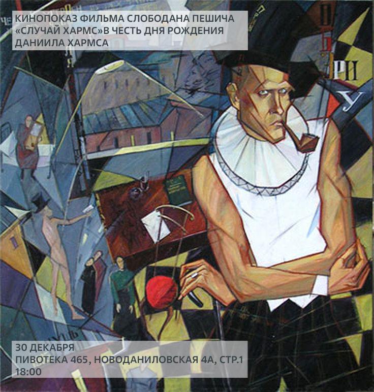 В понедельник, 30 декабря, исполнится ровно 119 лет со дня рождения выдающегося писателя-авангардиста Даниила Хармса. Приглашаем вас на просмотр и обсуждение фильма Слободана Пешича «Случай Хармса» в бар «Пивотека 465» на Тульской. Сюрреалистическая картина рассказывает о встрече Хармса с ангелом-хранителем, который помогает писателю преодолевать сложности жизни в Стране Советов.