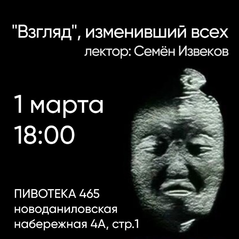 1 марта, в тридцатую годовщину гибели Влада Листьева, ретротелекритик проекта VATNIKSTAN, журналист и историк Семён Извеков прочитает лекцию о программе «Взгляд» — первом звёздном проекте Листьева.