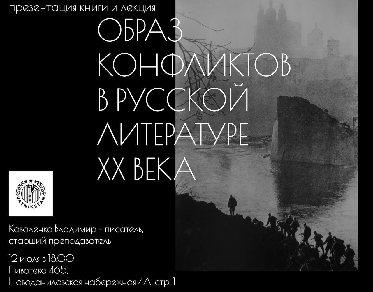 12 июля в баре "Пивотека 465" состоится презентация книги писатея Владимира Коваленко и лекция «Образ конфликтов в русской литературе XX века».